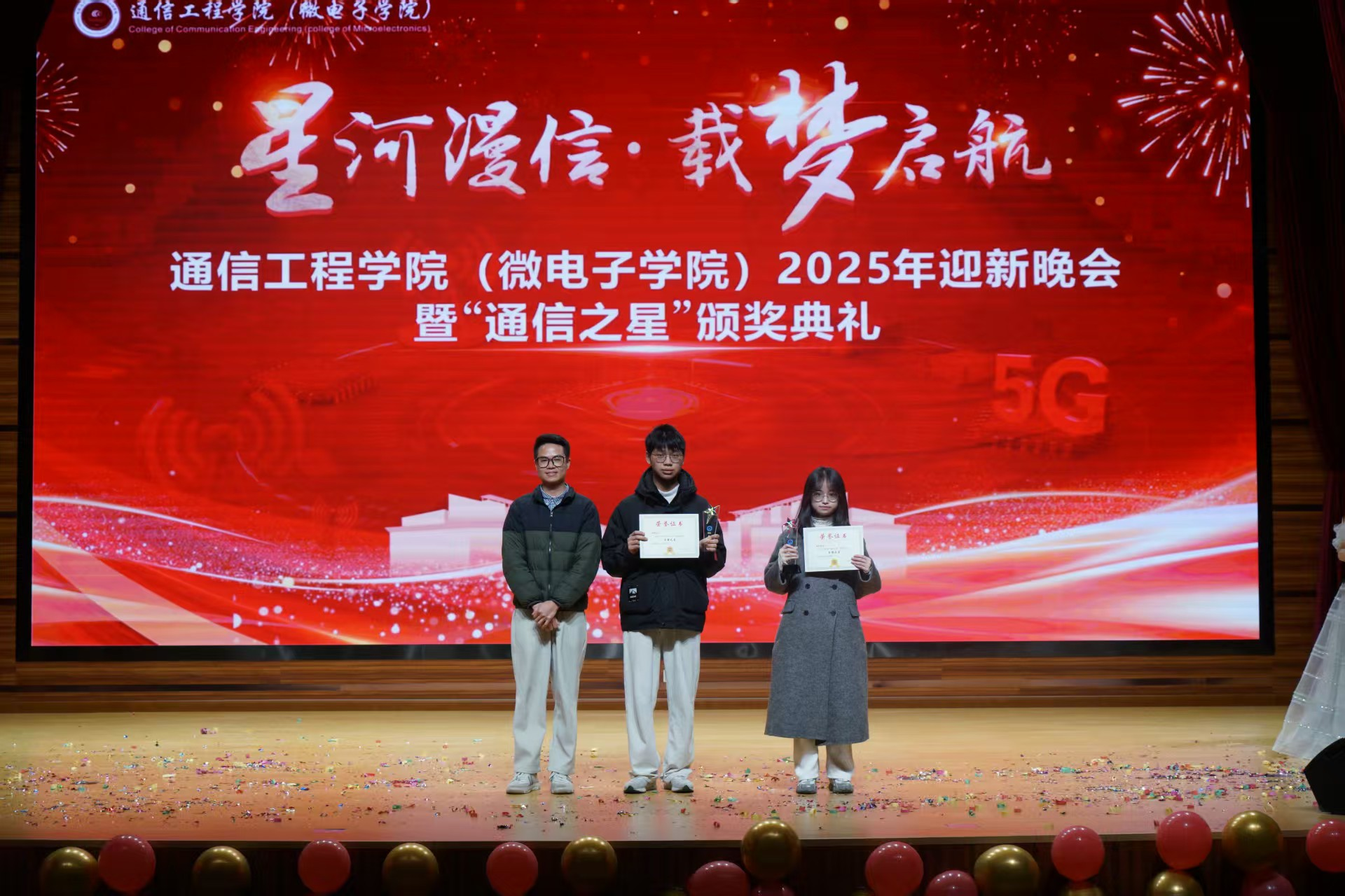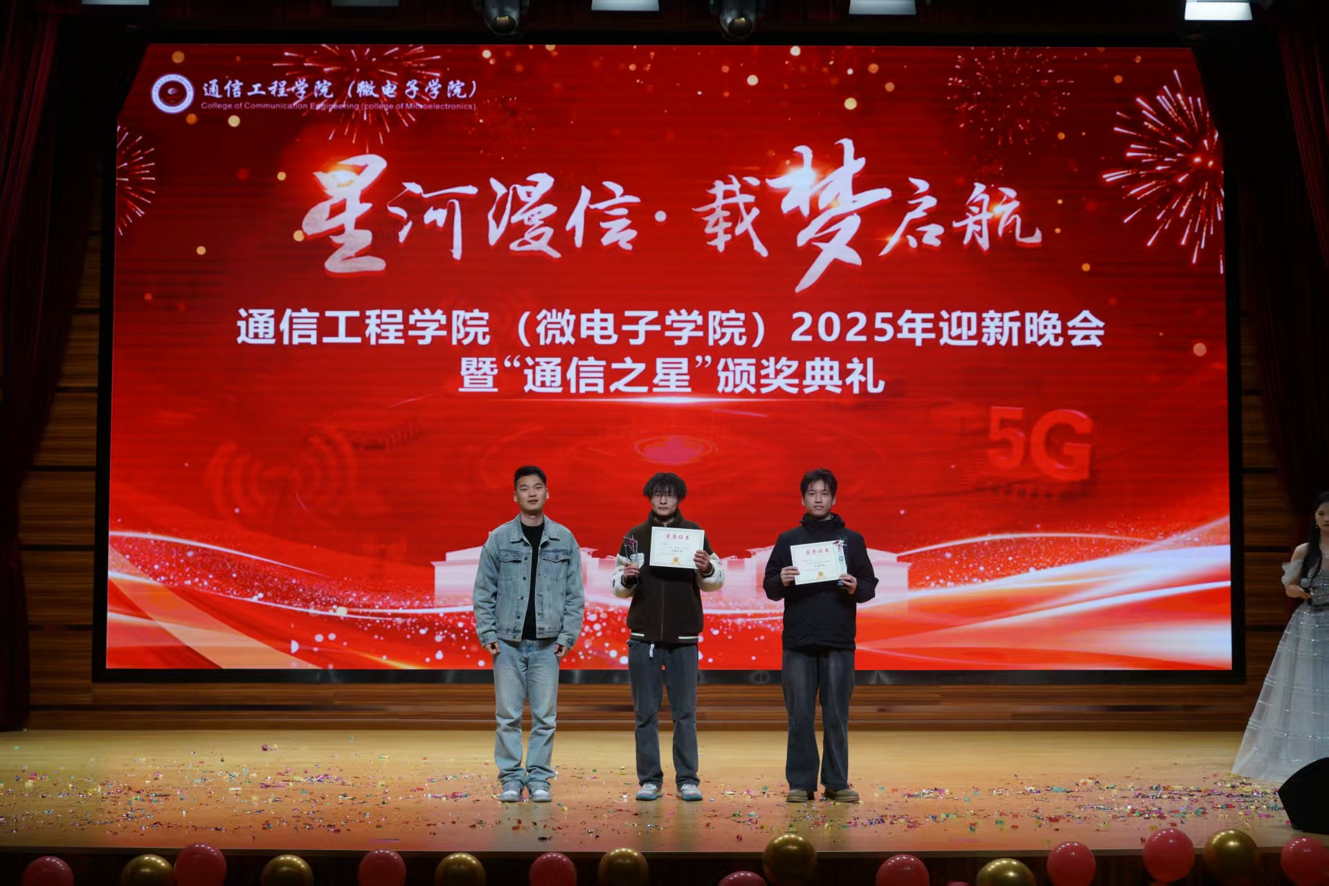 在光影交错、歌声飞扬之中,“星河漫信,载梦启航”tyc8722太阳集团城2025年迎新晚会暨“通信之星”颁奖典礼圆满落幕!本次晚会让学院师生充分感受到校园文化的丰富多彩,用榜样的力量激人奋进,增强师生的归属感与使命感。晚会虽已落幕,但青春篇章方才启程。愿通信学子从此出发,砥砺前行,在地学沃土上扎根生长,在成信大舞台上书写无愧于时代、无愧于青春的灿烂华章!