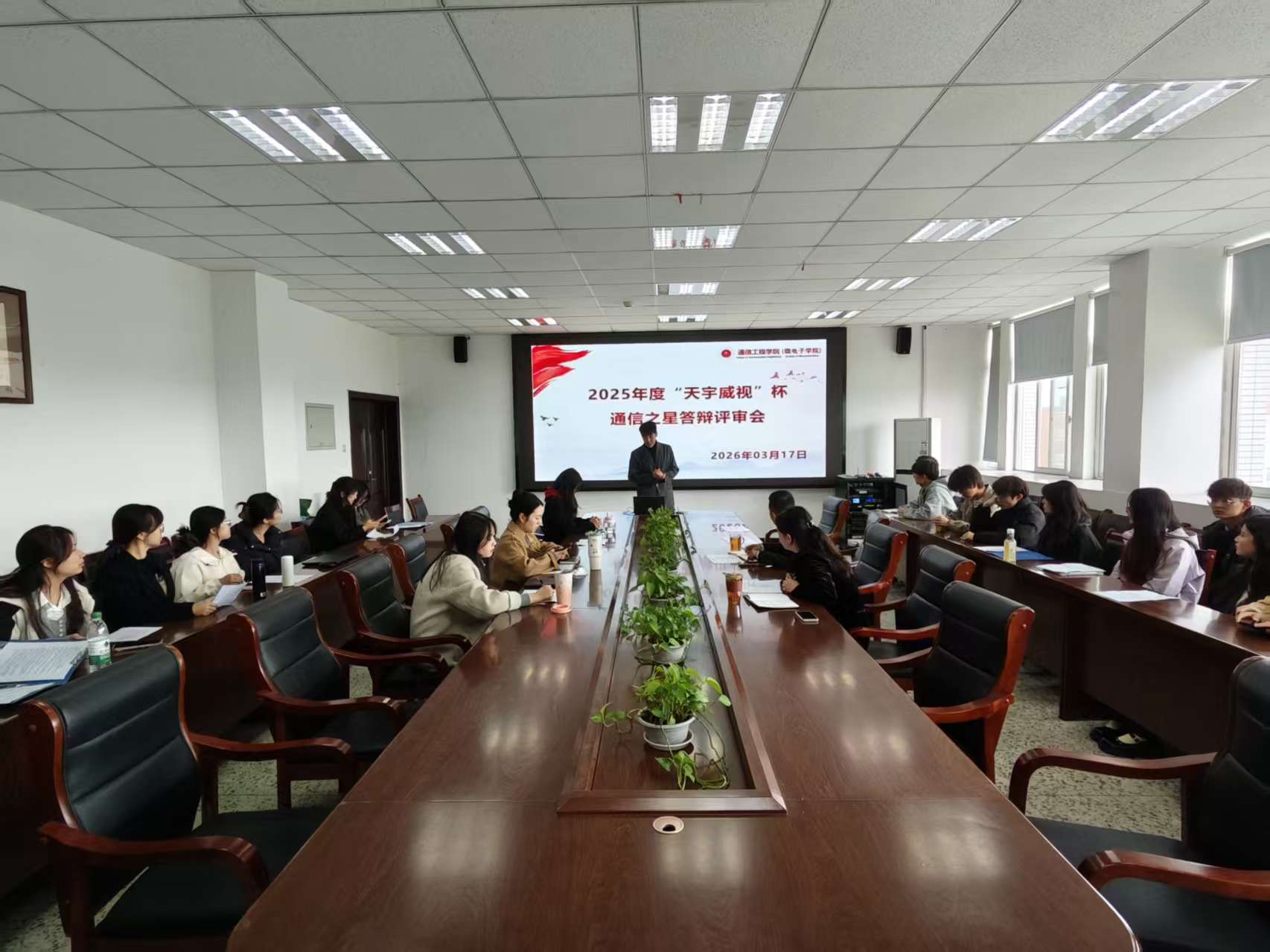 3月17日下午,学院举行2025年度“天宇威视”杯“通信之星”评审答辩会,全体辅导员、候选人同学参加,学院党委副书记刘畅主持。