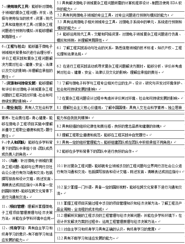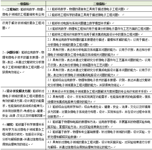培养目标1:能够综合运用数学、自然科学和微电子领域的相关理论和技术,对微电子产品或系统进行构思、设计、实现和运行;