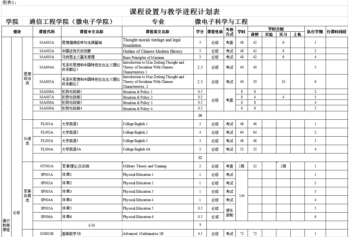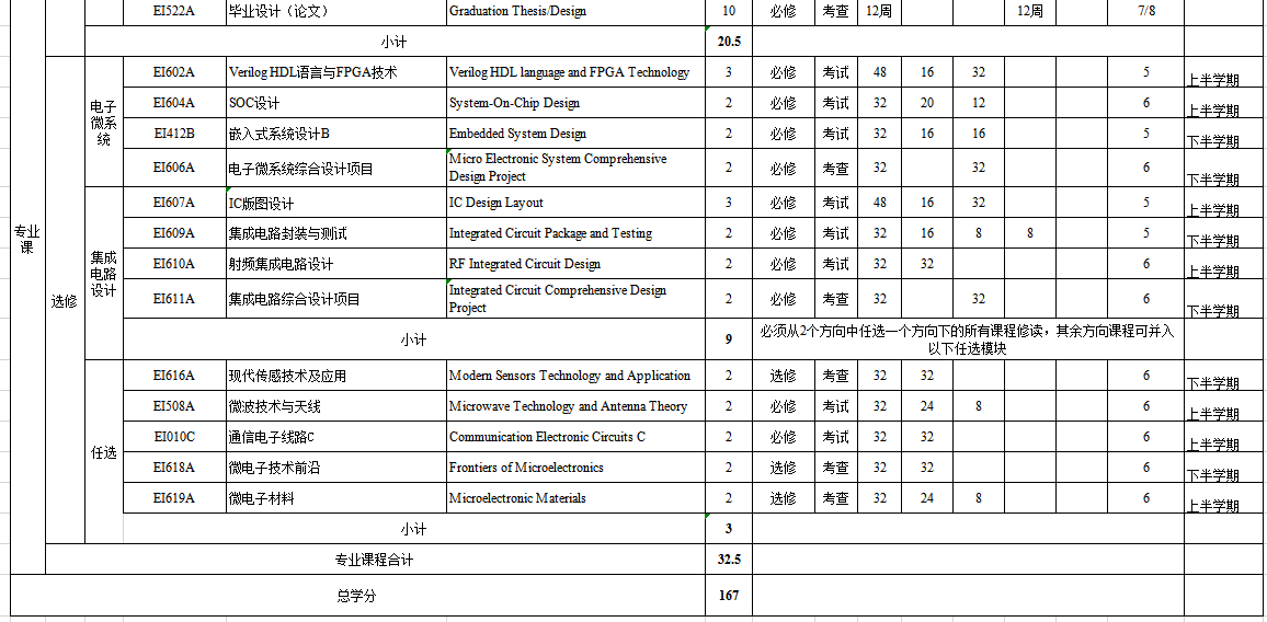 专业名称(中):微电子科学与工程