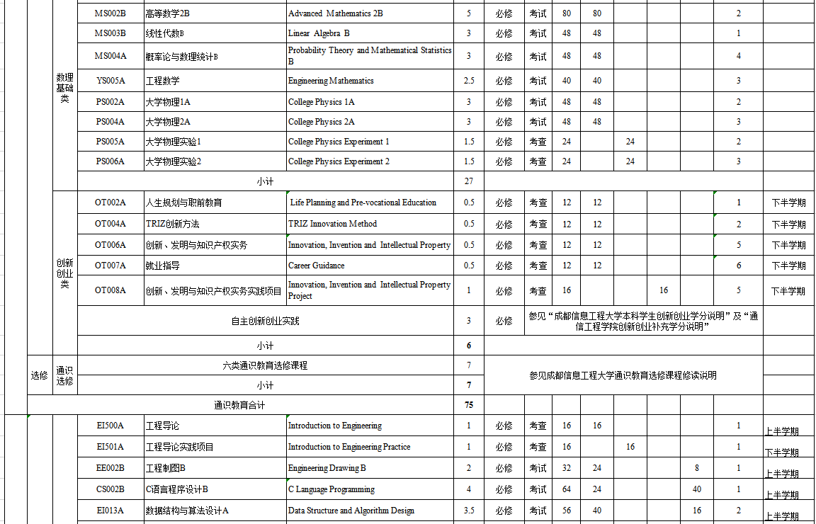 6. 周数的学时按:周数乘以16学时计。选修课的学时按可开出的最高实践学时估算。