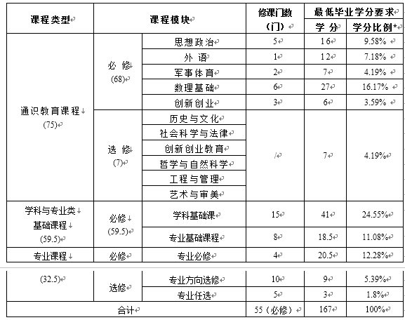一、本校所有本科专业学制均为四年,各专业人才培养方案据此进行课程设置及学分分配,规定最低毕业学分一般为160-165学分。