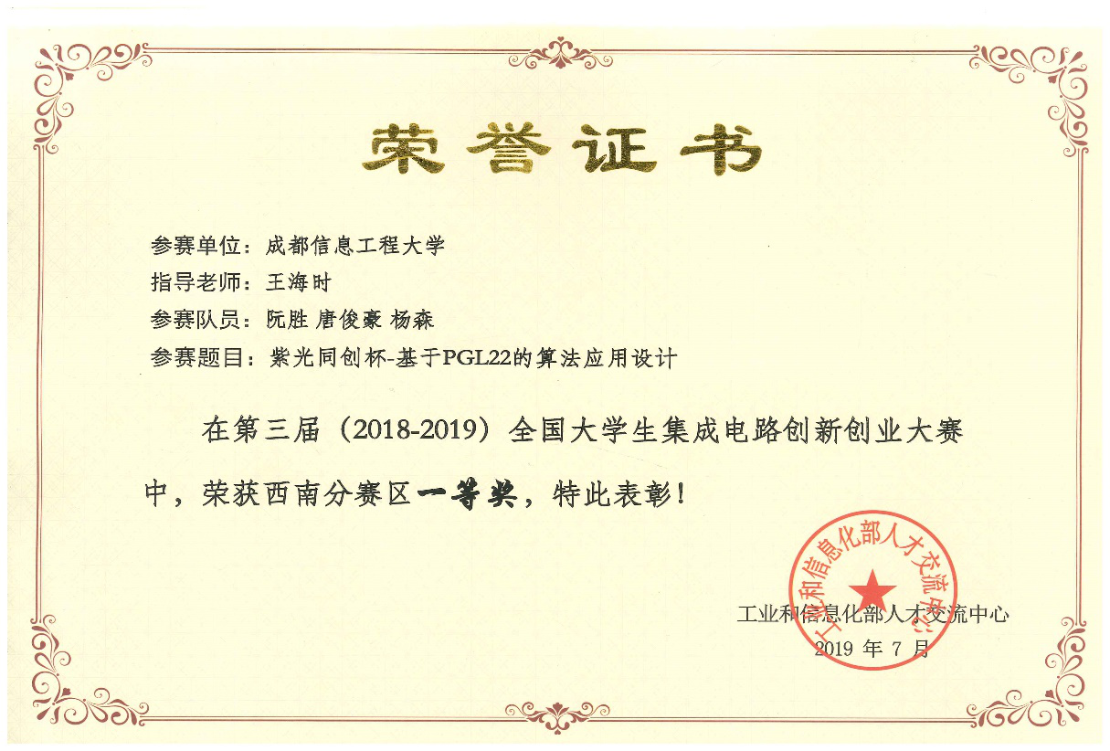 7月21日至22日,由工业和信息化部人才交流中心主办、示范性微电子学院产学融合发展联盟、IEEE中国代表处、北京电子学会协办的第三届全国大学生集成电路创新创业大赛西南分赛区决赛在成都电子科技大学清水河校区举行。我院共有7支队伍参加了此次决赛,其中5支本科生队伍,2支研究生队伍。