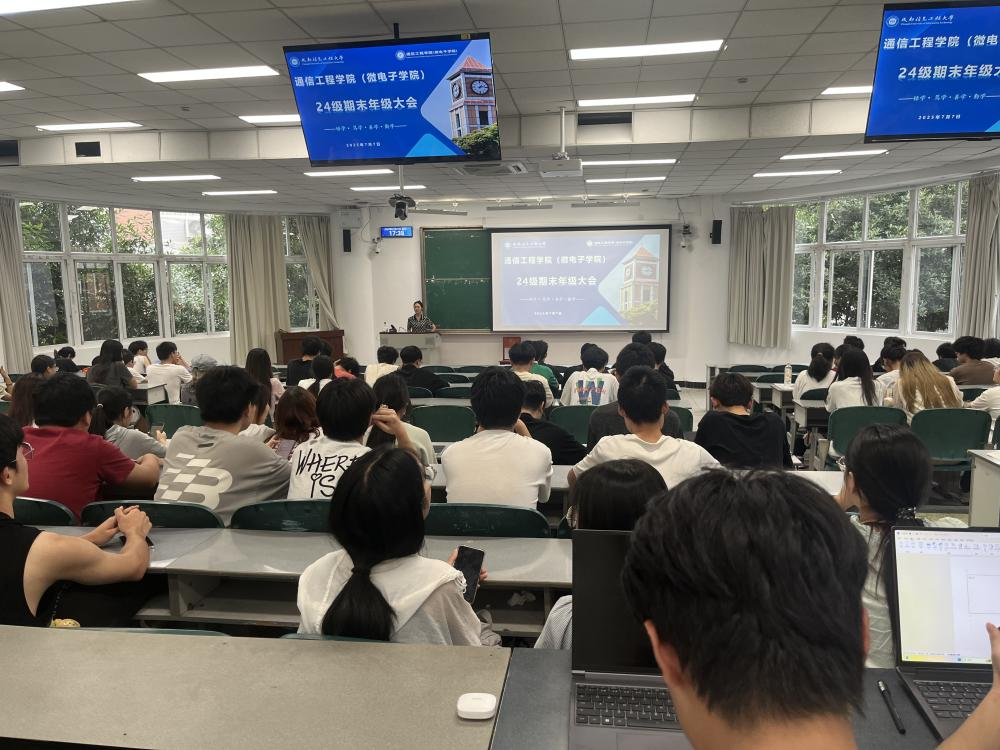 为进一步做好学期期末考试、明确暑期学习任务、引导未来职业发展工作,7月7日下午17:00,学院24级集成电路设计与集成系统,微电子科学与工程于H4213召开期末班会。此次班会由24级辅导员盛小芳主持,全体专业同学参加。