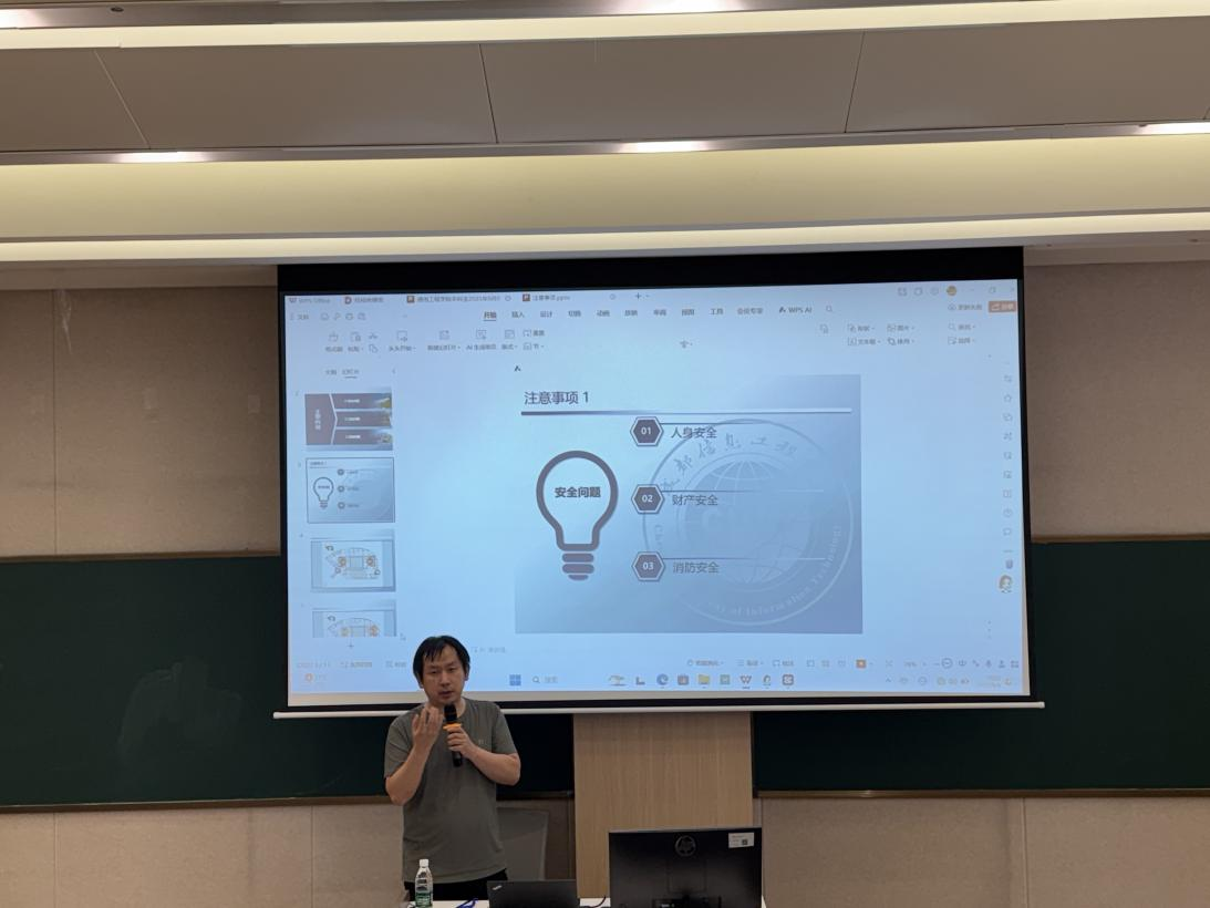 导师代表、芯谷校区管理教师张钟浩着重强调了实验室安全及宿舍安全管理的重要性。他指出,所有人员必须时刻保持高度的安全意识。为确保校区安全管理措施得到有效执行,张老师介绍了实验室和宿舍的安全管理规章制度,要求每位成员严格遵守包括用电安全、防火防爆等规定。鼓励同学发现安全隐患时及时上报,建立有效的安全隐患报告和处理机制,共同营造一个安全、健康、有序的实验和居住环境。