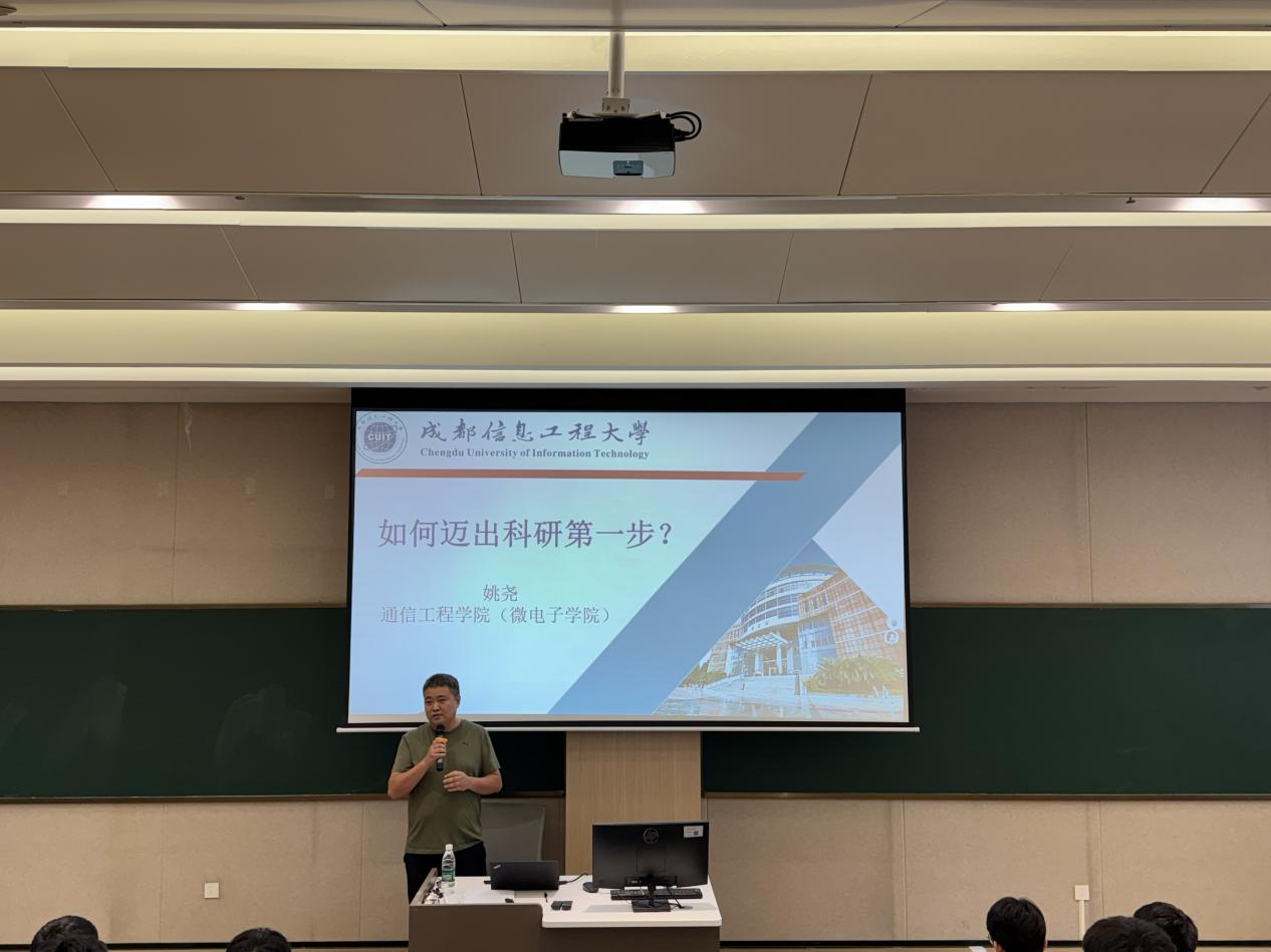 随后导师代表姚尧为新生们带来以“如何迈出科研第一步”为主题的科研素养专题讲座。讲座涵盖了从培养科研思维、文献阅读、问题分析与实验设计等方面基于个人经验给出宝贵建议,鼓励同学们勇于尝试、保持好奇,积极参与学术交流。讲座现场反响热烈,为新生融入科研学习提供了及时有力的指引。