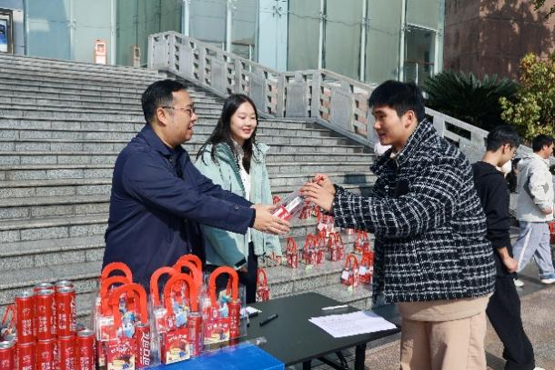 在2026年全国硕士研究生招生考试即将到来之际,为鼓舞考研学子士气、缓解备考压力、增强迎考信心。11月27日中午,学院党委于图书馆门口举办“研路同行,暖心护航”大四考研慰问活动。学院党委书记李明、副院长李文藻、副院长薛雅娟、以及学院所有辅导员一同为正处于冲刺阶段的考研学子送上关怀与祝福。