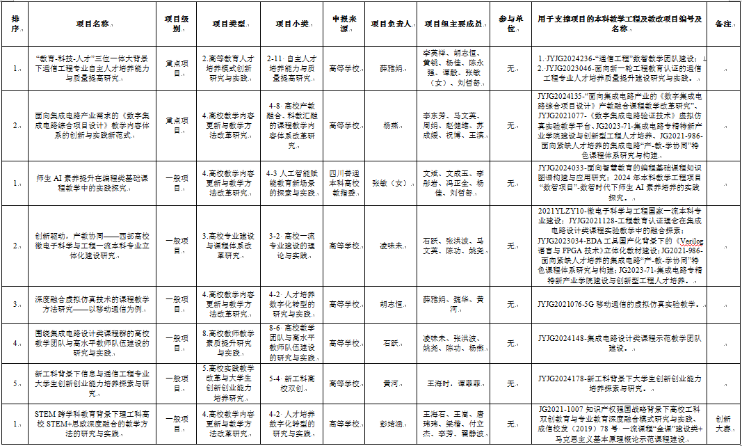 根据《四川省教育厅关于开展2024-2026年高等教育人才培养质量和教学改革项目申报工作的通知》文件要求,经学院教师自愿申报,学院评审专家审议,现将推荐情况公布如下: