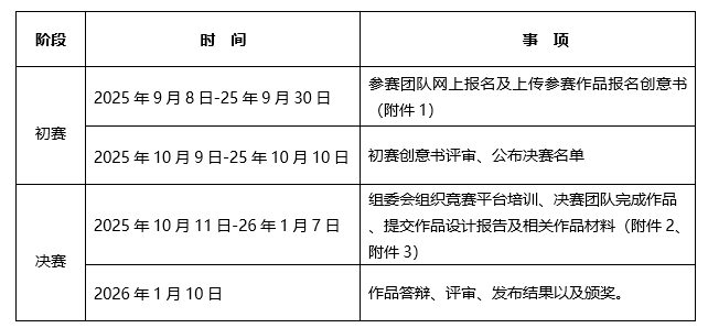 3.作品必须为参赛团队原创,不可用他人作品(或产品)参加竞赛。如果产生知识产权纠纷,将取消比赛资格,后果由参赛团队负责。
