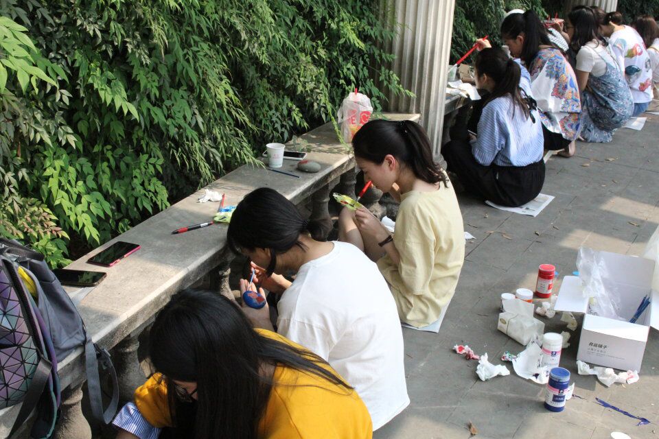 此次活动分为三个部分。第一部分,在4月19日~20日进行摆点宣传,负责人在第一二食堂进行摆点宣传并进行现场报名,摆点过程中,每个部门成员都耐心地向学生们介绍此次活动,并将参赛选手拉入活动群。摆点结束后,有二十多名同学参与了此次活动。第二部分,在22日,活动负责人将参赛选手召集到小罗马广场完成自己的作品,活动中拍下了很多同学们认真画石头的照片,活动最后大家留影纪念。第三部分,在23日~24日为线上投票环节,让同学们为自己认为最好看的石头投票。最后,排名前五的参赛选手都获得了精美礼物。