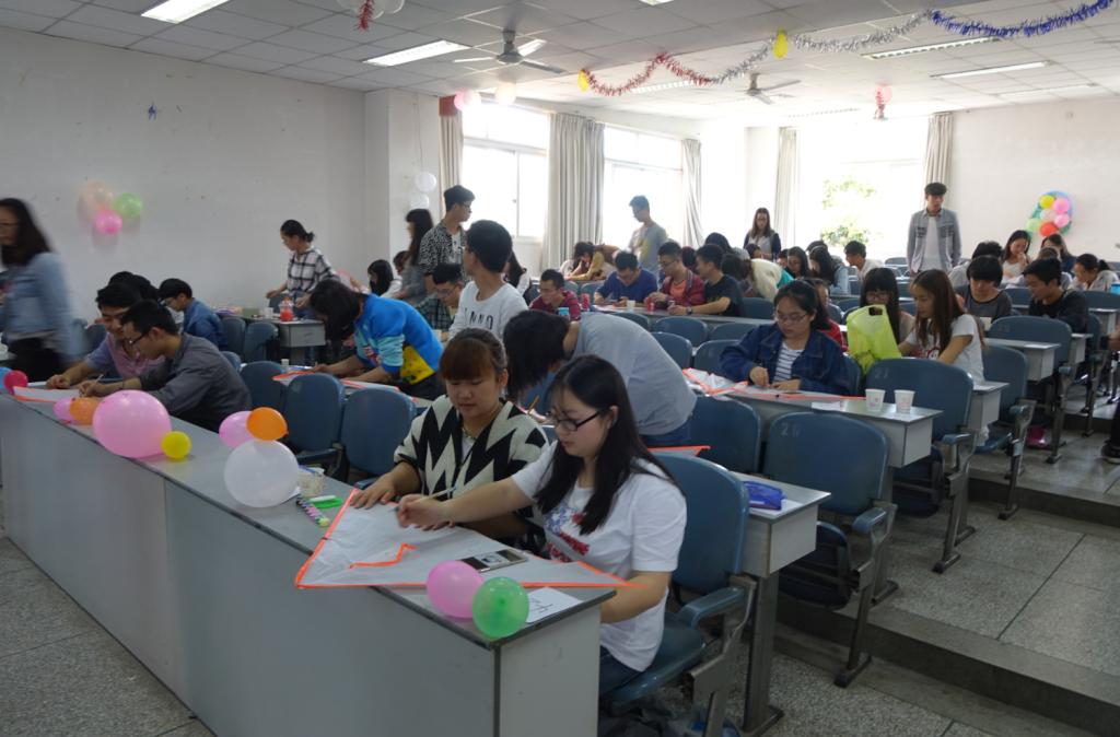 本次活动的内容标新立异。首先参与比赛的同学需要在限定的时间里,使用相应的材料制作风格迥异的风筝,然后这些风筝再由评委评分筛选,最后剩下的作品进行试飞,若试飞成功,则才算成功。不少同学为此绞尽脑汁,极力想出一个完美的图案,他们的身影,在田径场上勾勒出一幅美丽的图画。下午四点左右,各位参赛选手的风筝陆续飞荡在空中,不少同学拿出相机留恋,下午五时左右,主持人公布了比赛的前三名,比赛正式落下帷幕。