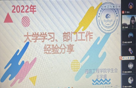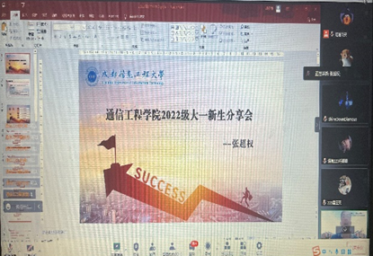为了让2022级新同学尽快适应大学生活,融入到通信工程学院大家庭来,9月17号下午2点,通信工程学院在腾讯会议上开展新老生见面会,出席本场交流会的同学是2018级张超权、2020级王宇睿。