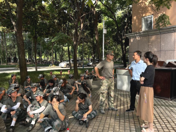 9月9日下午,党委副书记刘畅带领新生辅导员张晓凤、盛小芳前往航空港第二田径场进行军训慰问。刘畅首先对同学们不惧困难、奋斗拼搏的坚毅品质给予高度肯定和赞扬,并就近期天气炎热等相关安全事宜进行强调,要求同学们在保证安全的前提下,有组织、有纪律、有态度把各项军训任务圆满地完成,随后辅导员对各连队同学们的适应情况进行了一一询问。