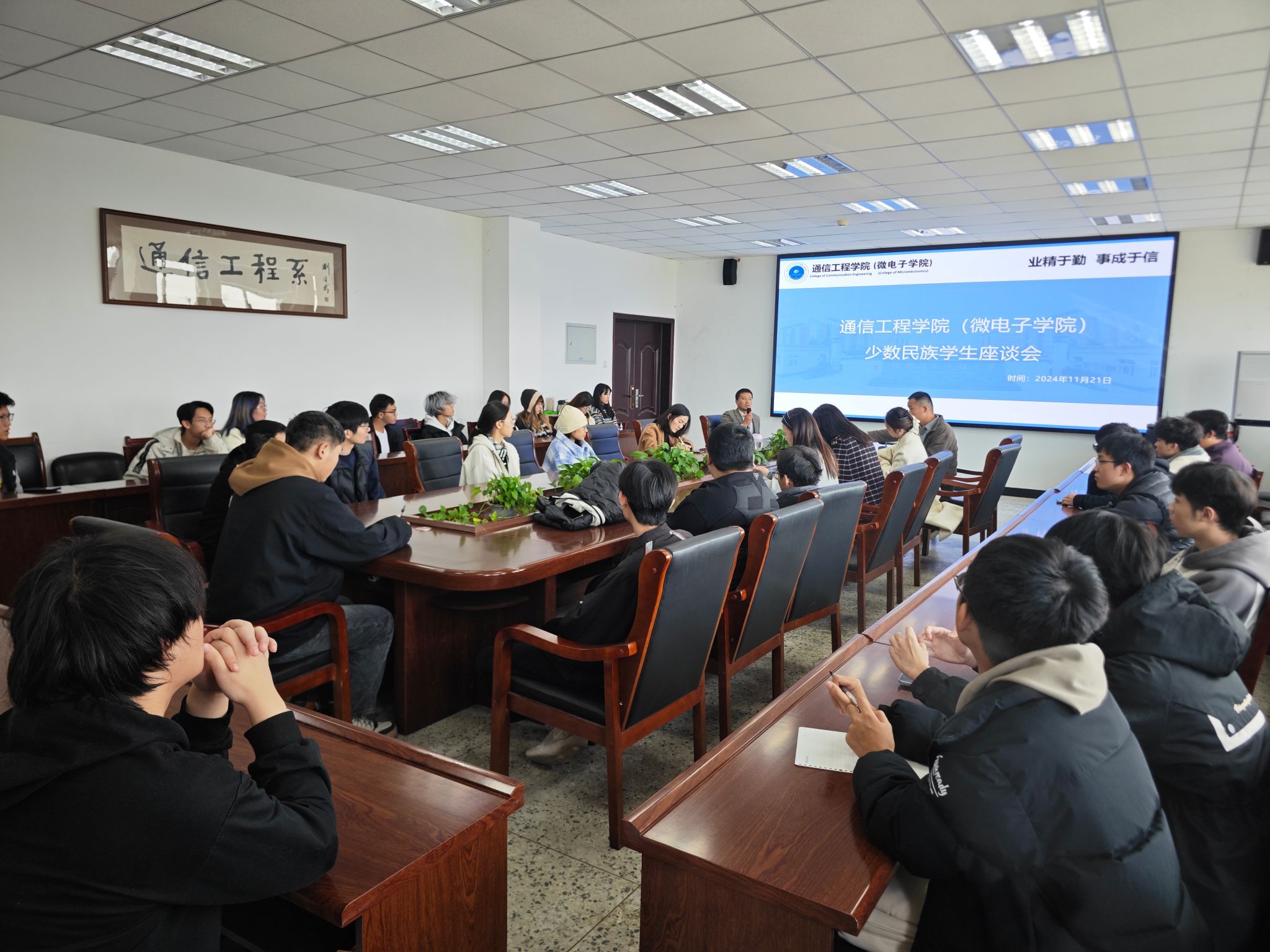 为深入学习贯彻党的二十届三中全会精神及中央民族工作会议精神,贯彻落实习近平总书记关于加强和改进民族工作的重要思想,铸牢中华民族共同体意识,深化民族团结进步教育,促进各民族学生交流交往交融,助力少数民族学生更好成长,11月21日15:30分,tyc8722太阳集团城党委在信达楼A603会议室组织开展了一场少数民族学生座谈会,学院党委副书记刘畅、全体辅导员及学院全体少数民族学生参加了此次会议。