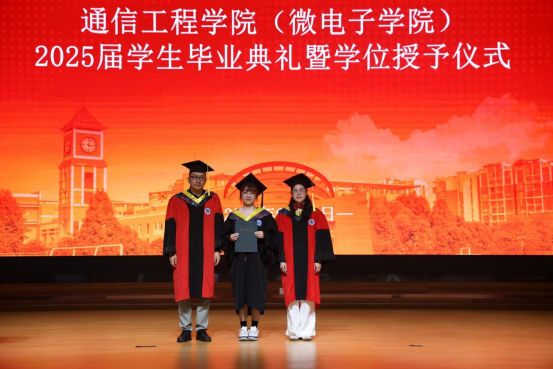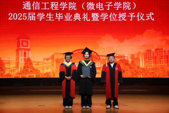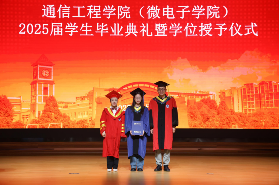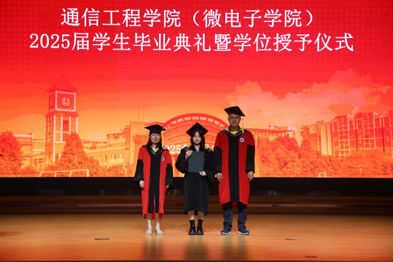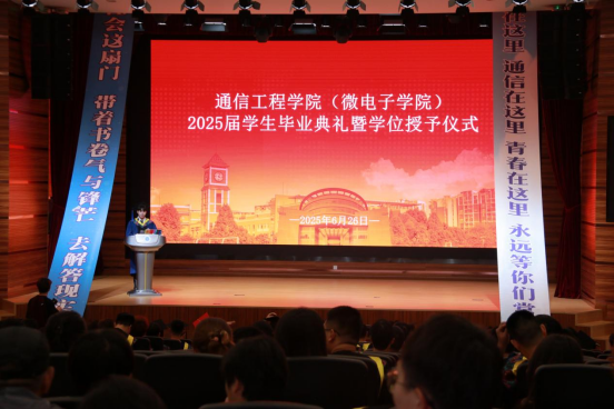 罗小蓉副校长为通信学子作了题为《山海有信,青春无界》的毕业寄语。她向顺利完成学业的同学们表示热烈祝贺,并勉励大家在未来的工作和生活中坚守初心、勇于担当。她向毕业生们提出了五点期望:一是胸怀国家,志存高远;二是守正创新,勇立潮头;三是脚踏实地、追求卓越;四是坚韧不拔,乐观向上;五是饮水思源,情系母校!