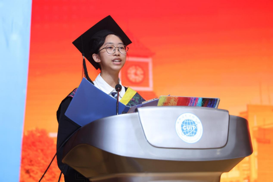 随后,毕业生代表林洋屹上台发言,她深情回顾了在校求学的难忘经历,表达了对母校、师长和同窗的感激之情,并承诺将以实际行动践行“业精于勤,事成于信,臻于至善,追求卓越”的学院精神。