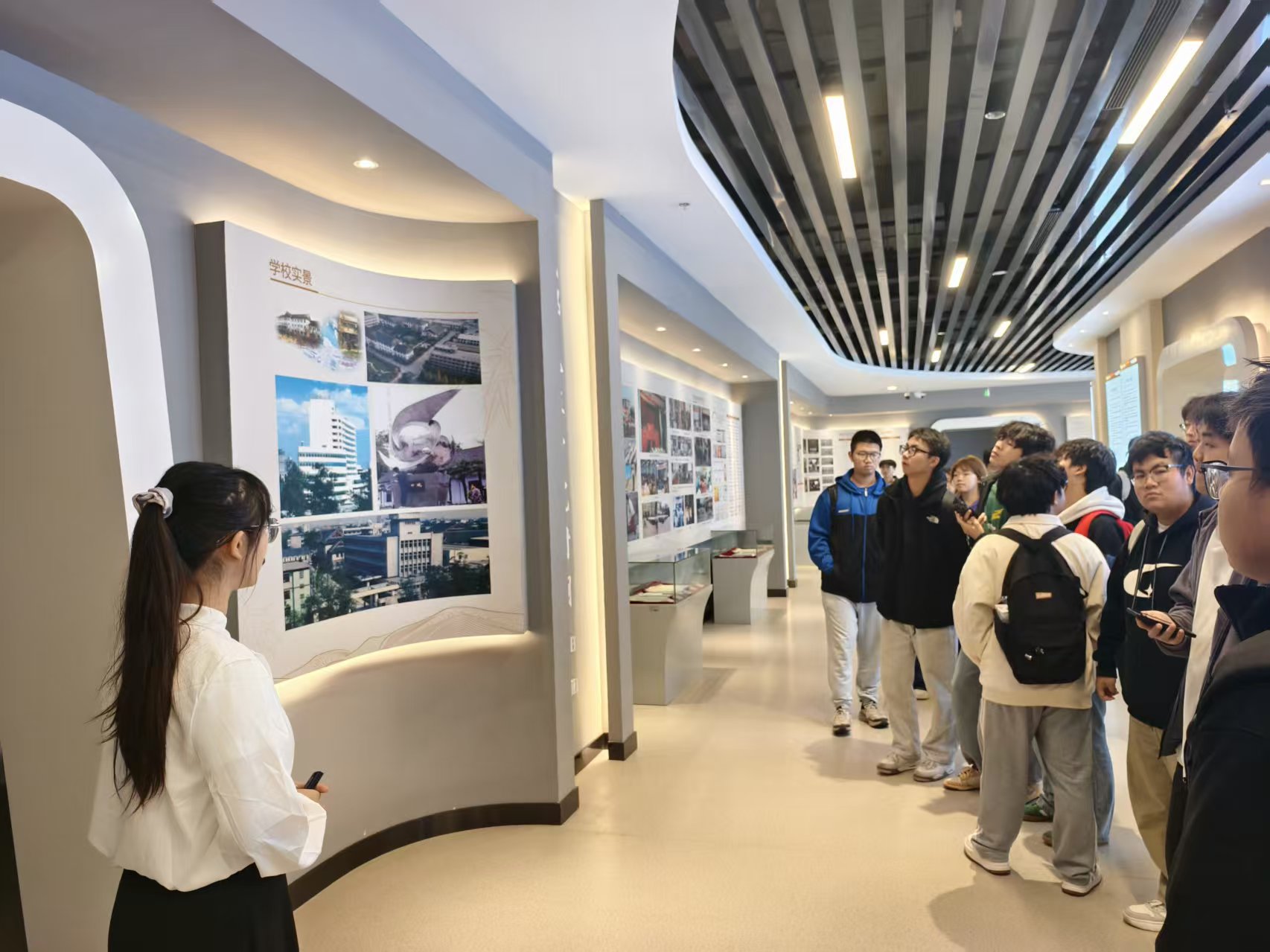 各班级在班委的组织带领下,遵守馆内秩序,认真跟随讲解员参观。讲解员结合馆内文献资料、历史图片、实物展品等,生动介绍了学校的发展沿革、学科建设成果等,让新生对学校的办学底蕴有了直观且深刻的认识。