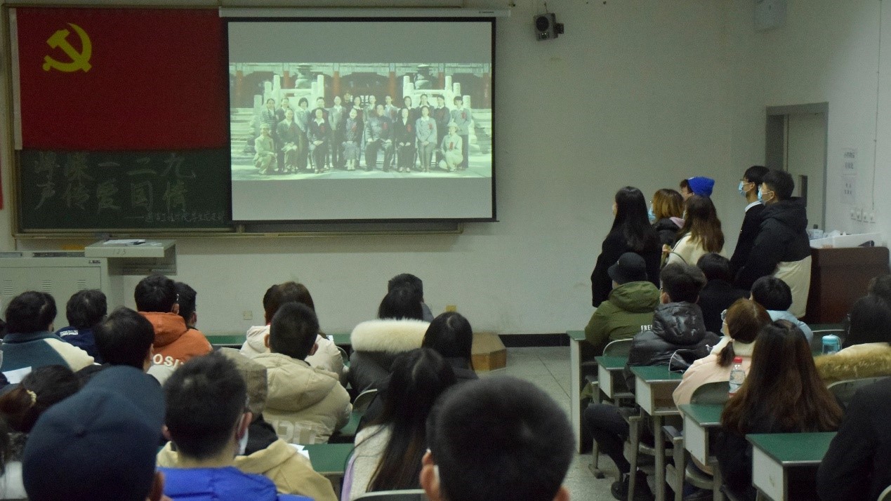 活动在主持人介绍一二九运动的背景中拉开序幕。活动中,大家先后展示了《建国大业》、《青春之歌》等经典影视片段,一段段感情饱满、生动的配音表演充分展示了同学们一心向党、爱党爱国的热情,更加坚定了同志们矢志报国,奋发有为的崇高理想。紧接着,主持人介绍了南京大屠杀死难者国家公祭日的背景和内涵,尔后,全体与会人员脱帽起立,为全体南京大屠杀死难同胞默哀一分钟,并观看南京大屠杀相纪录片。