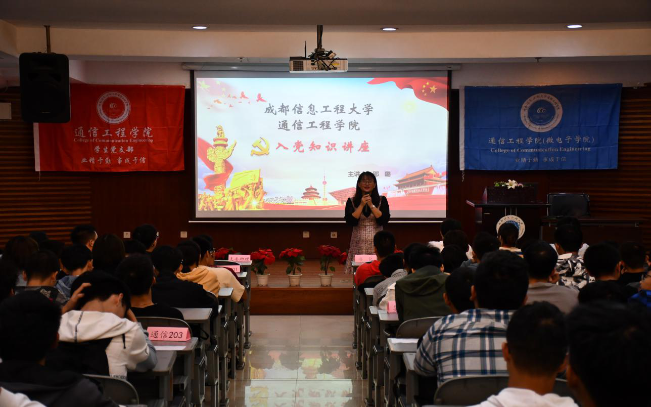 2020年9月28日,通信工程学院学生党支部于学术报告厅顺利开展2020级新生入党知识讲座。参加本次入党知识讲座的有通信工程学院学生党支部书记邵璐、全体党支部成员及2020级全体新生。