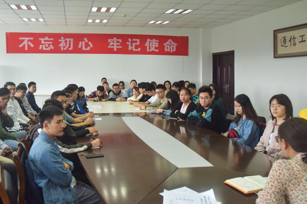 党的十九大报告指出“弘扬马克思主义学风,推进‘两学一做’学习教育常态化制度化,在全党开展‘不忘初心、牢记使命’主题教育。”10月13日上午,通信工程学院“不忘初心 、牢记使命”学习体会分享会在双中心A603成功召开,本次会议的参与人员有通信工程学院全体学生党员、学生党支部全体成员,主讲人通信工程学院学生党支部书记邵璐。