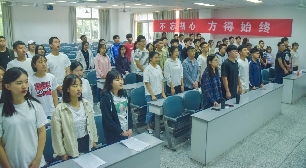 活动伊始,全员起立共唱国歌。随后,邵璐老师就近期党支部活动作出总结并强调学生党员要不忘初心、牢记使命,深入学习习近平新时代中国特色社会主义思想,增强“四个意识”、坚定“四个自信”、做到“两个维护”,发挥党员的先锋模范带头作用。