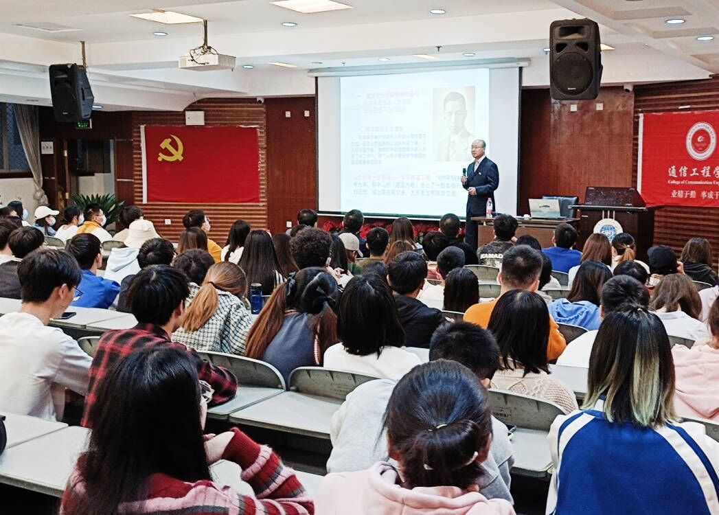 为促进我院入党积极分子提高自身素养,培养新时代创新人才。通信工程学院(微电子学院)学生党支部于5月17日晚在学术报告厅顺利开展“弘扬科学家精神,做新时代追梦人”主题党课活动。本次讲座邀请了在核工业从事四十余年,对钱学森精神进行深入研究的王文华高级工程师主讲。