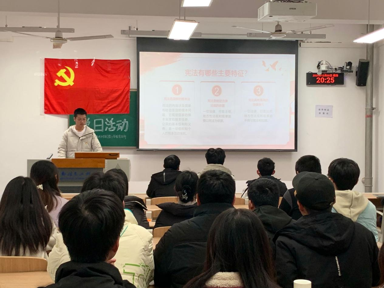 为深入学习领会宪法精神,增强党员的党性修养和使命感,tyc8722太阳集团城本科学生党支部于12月5日晚在H1205教室开展了“学习贯彻宪法精神”主题党日活动,tyc8722太阳集团城学生党支部党员参加学习。