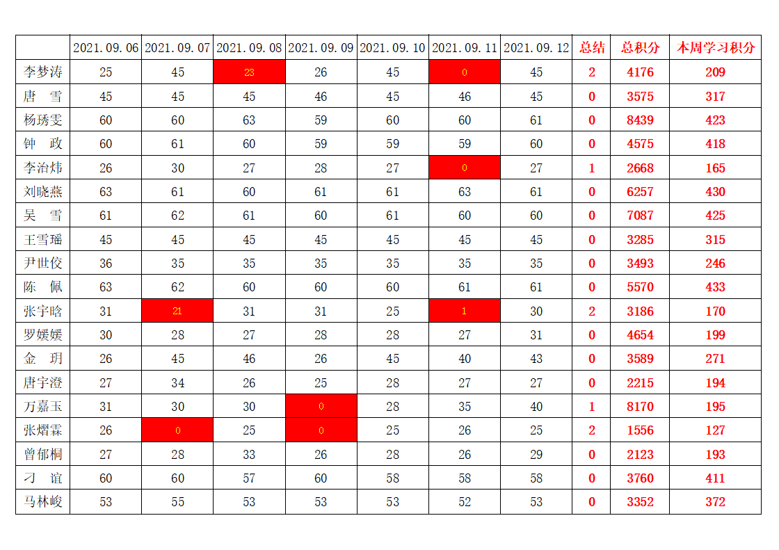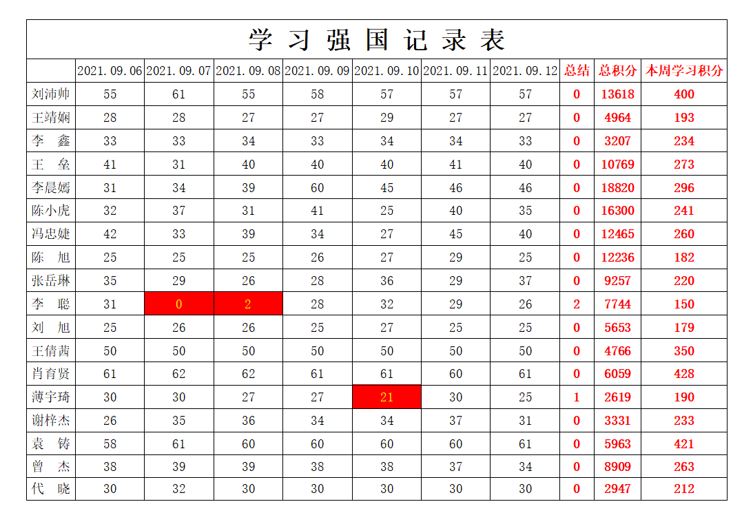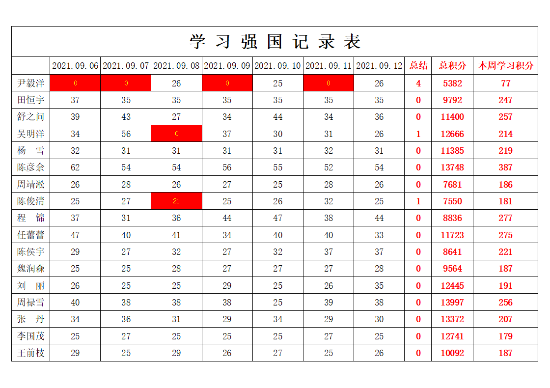 通信工程学院学生党支部2021-2022学年第一学期第一周学习强国学习进度