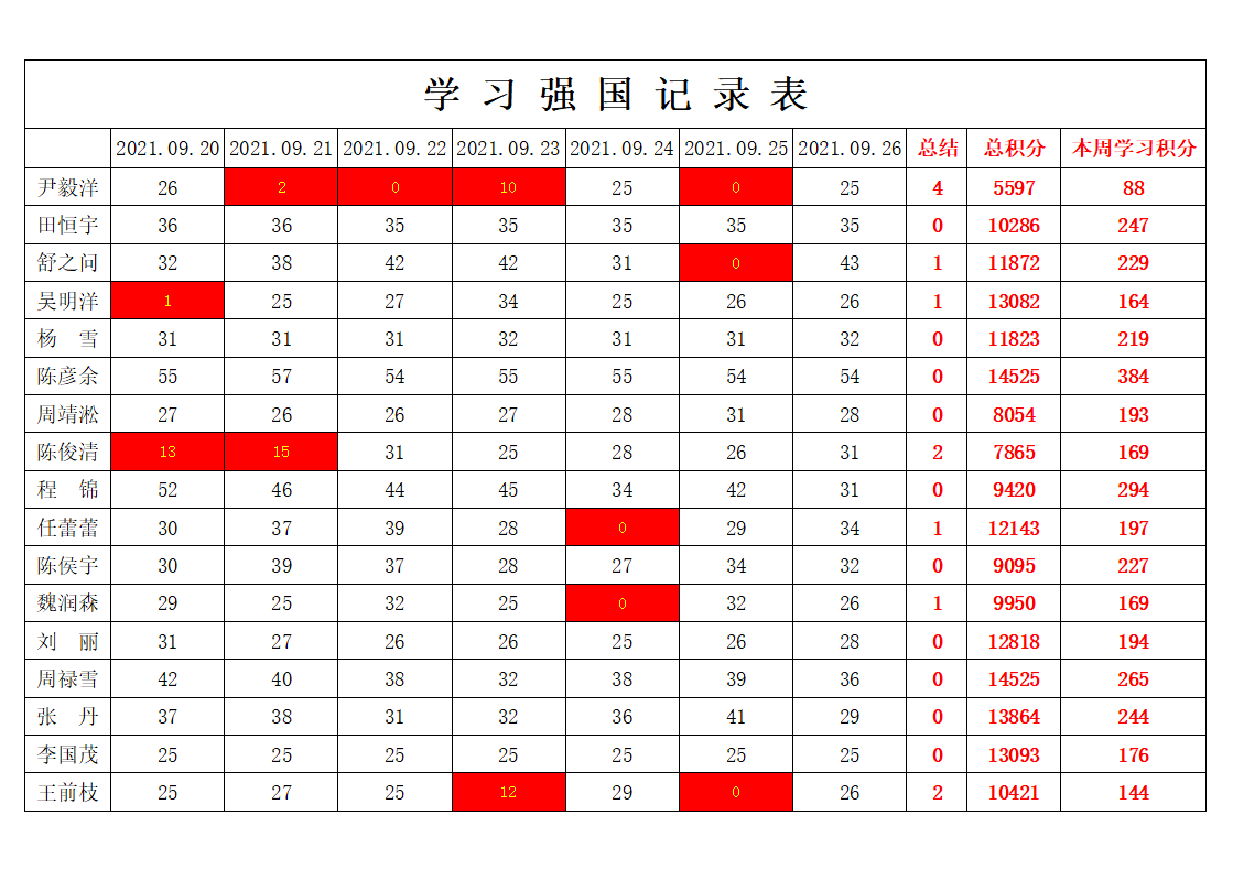 通信工程学院学生党支部2021-2022学年第一学期第三周学习强国学习进度