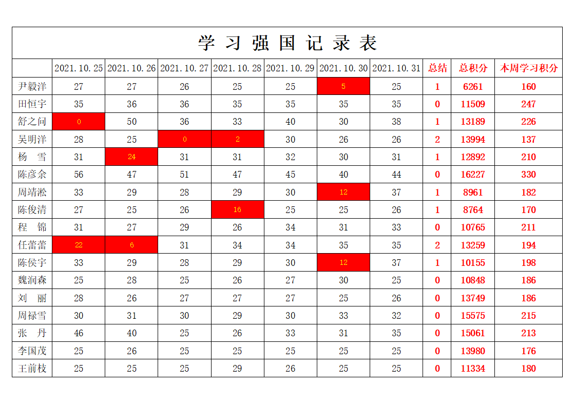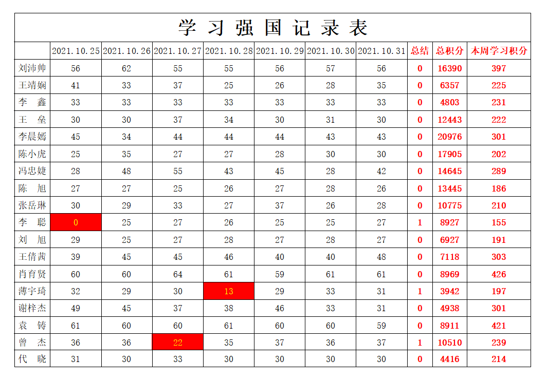 通信工程学院学生党支部2021-2022学年第一学期第八周学习强国学习进度