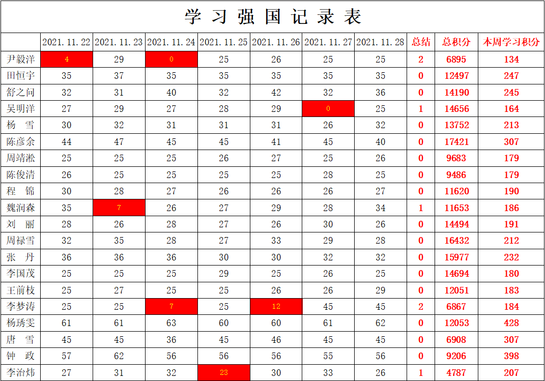 通信工程学院学生党支部2021-2022学年第一学期第十二周学习强国学习进度