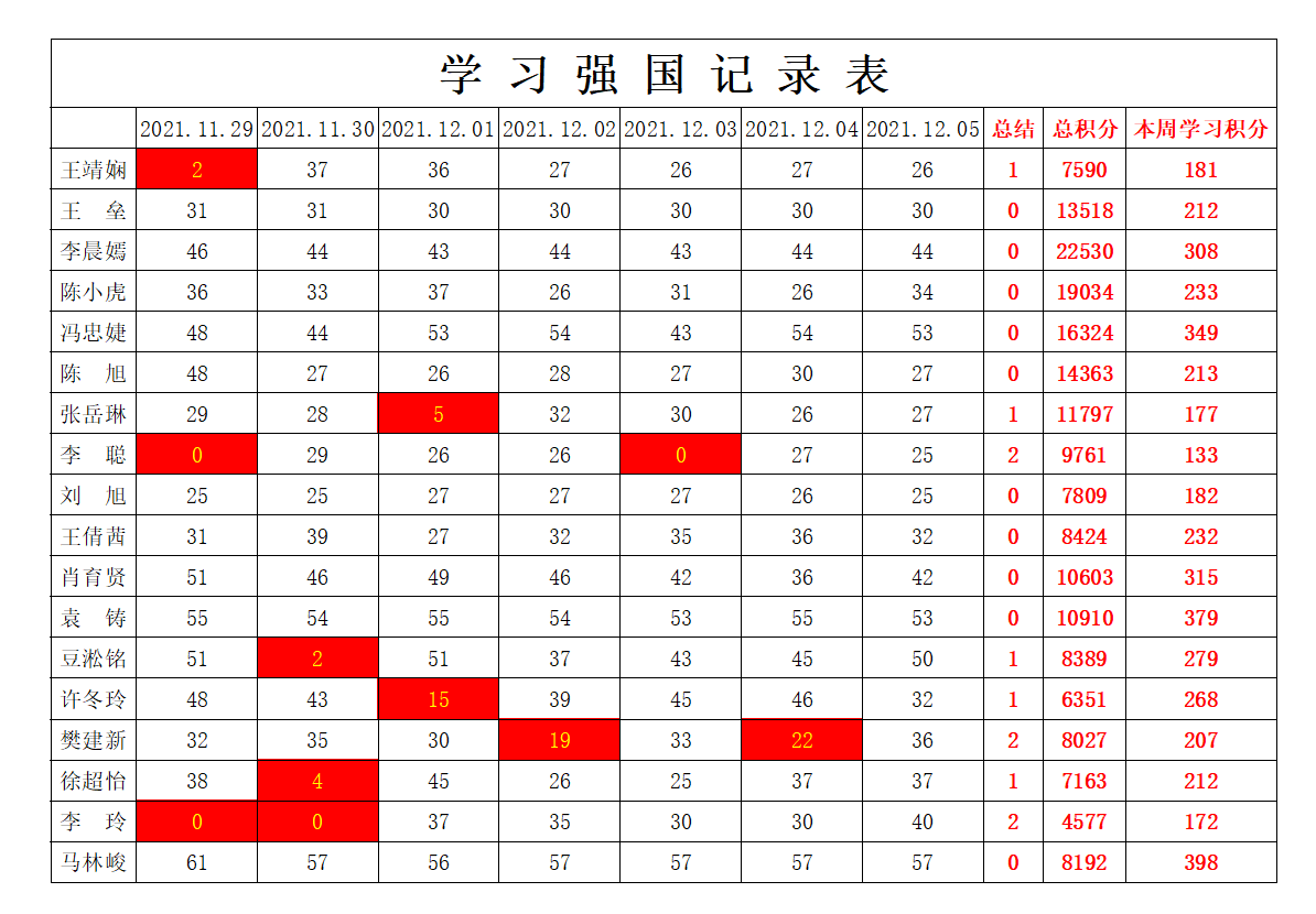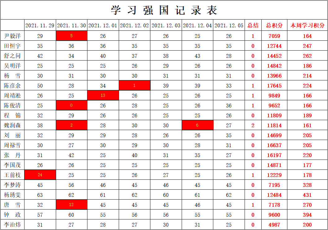 通信工程学院学生党支部2021-2022学年第一学期第十三周学习强国学习进度
