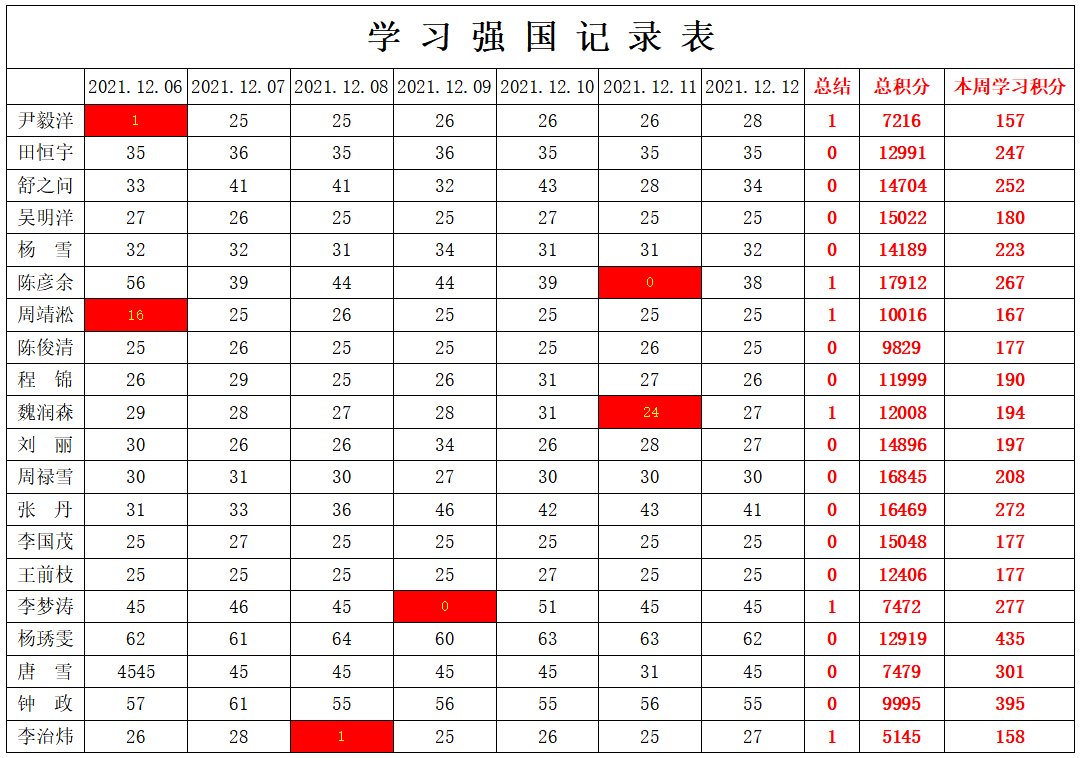 通信工程学院学生党支部2021-2022学年第一学期第十四周学习强国学习进度
