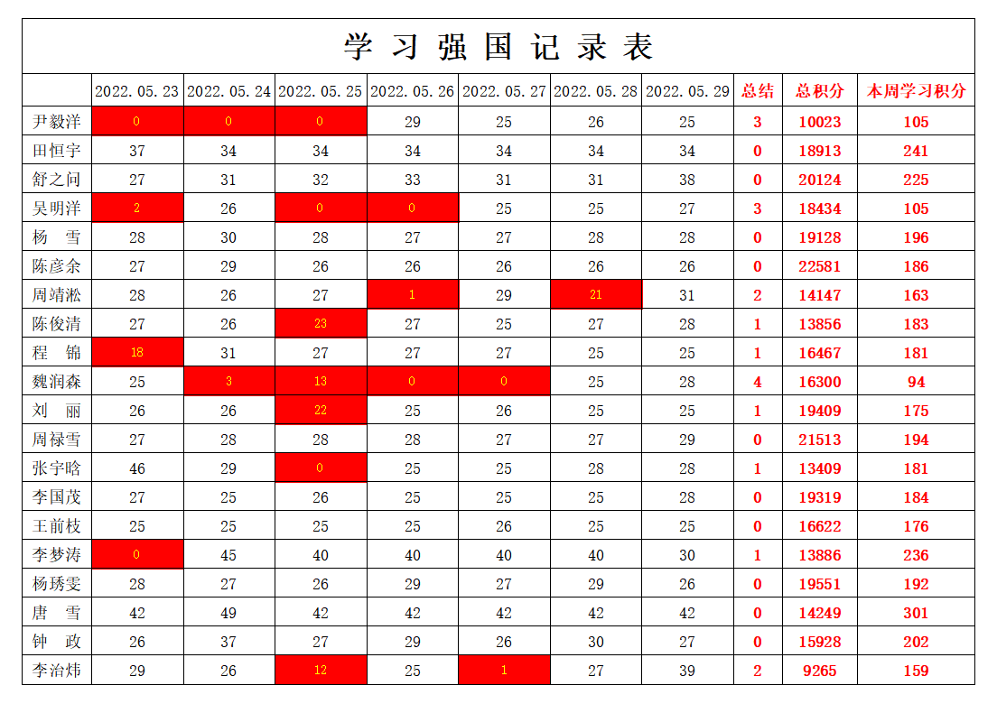 通信工程学院学生党支部2021-2022学年第二学期第十四周学习强国学习进度