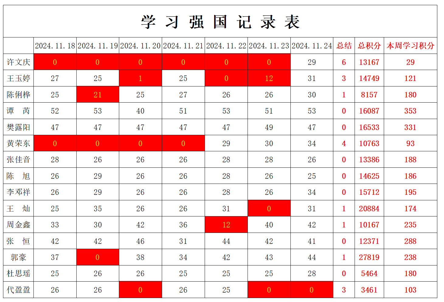 通信工程学院学生党支部2024-2025学年第一学期第十三周学习强国学习进度
