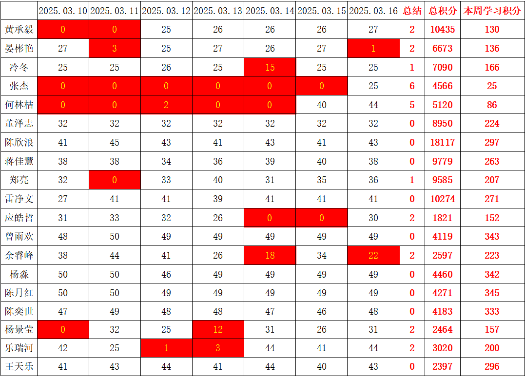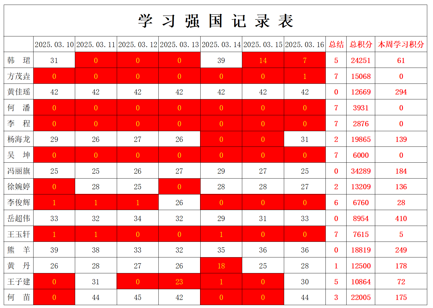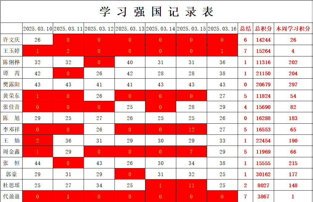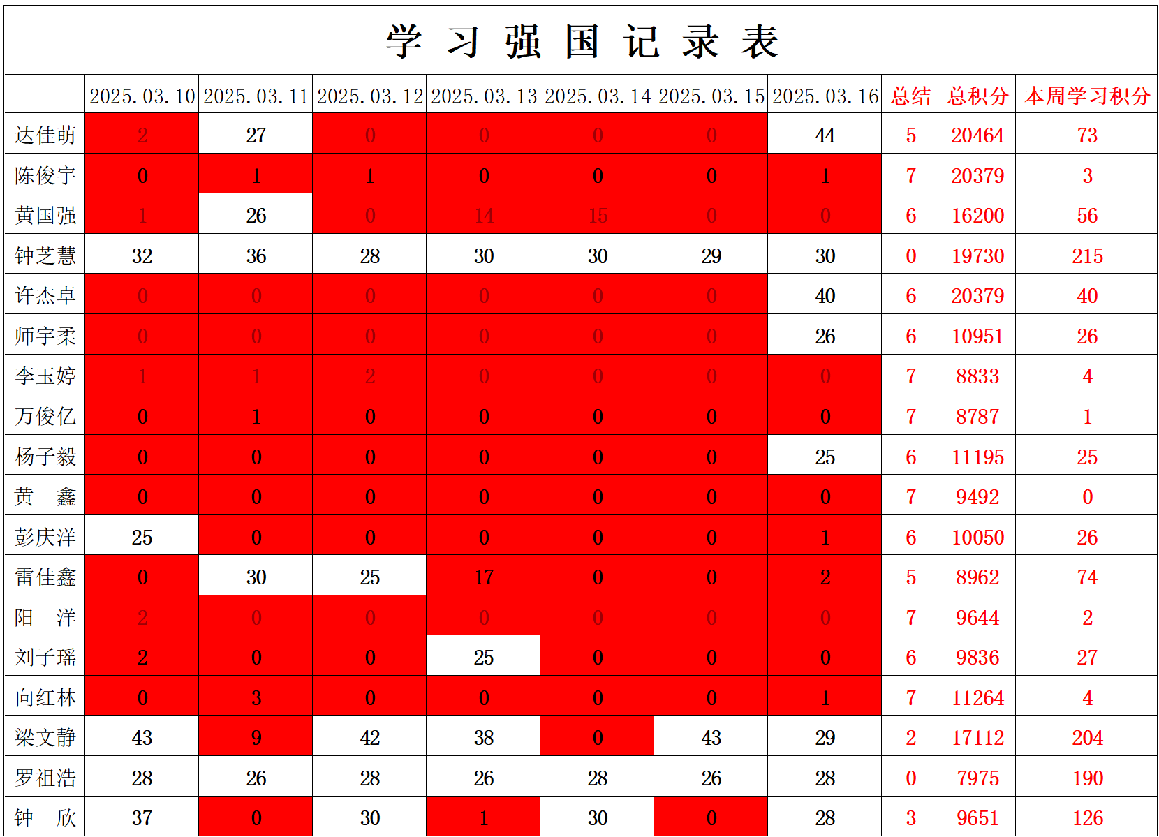 通信工程学院学生党支部2024-2025学年第二学期第三周学习强国学习进度