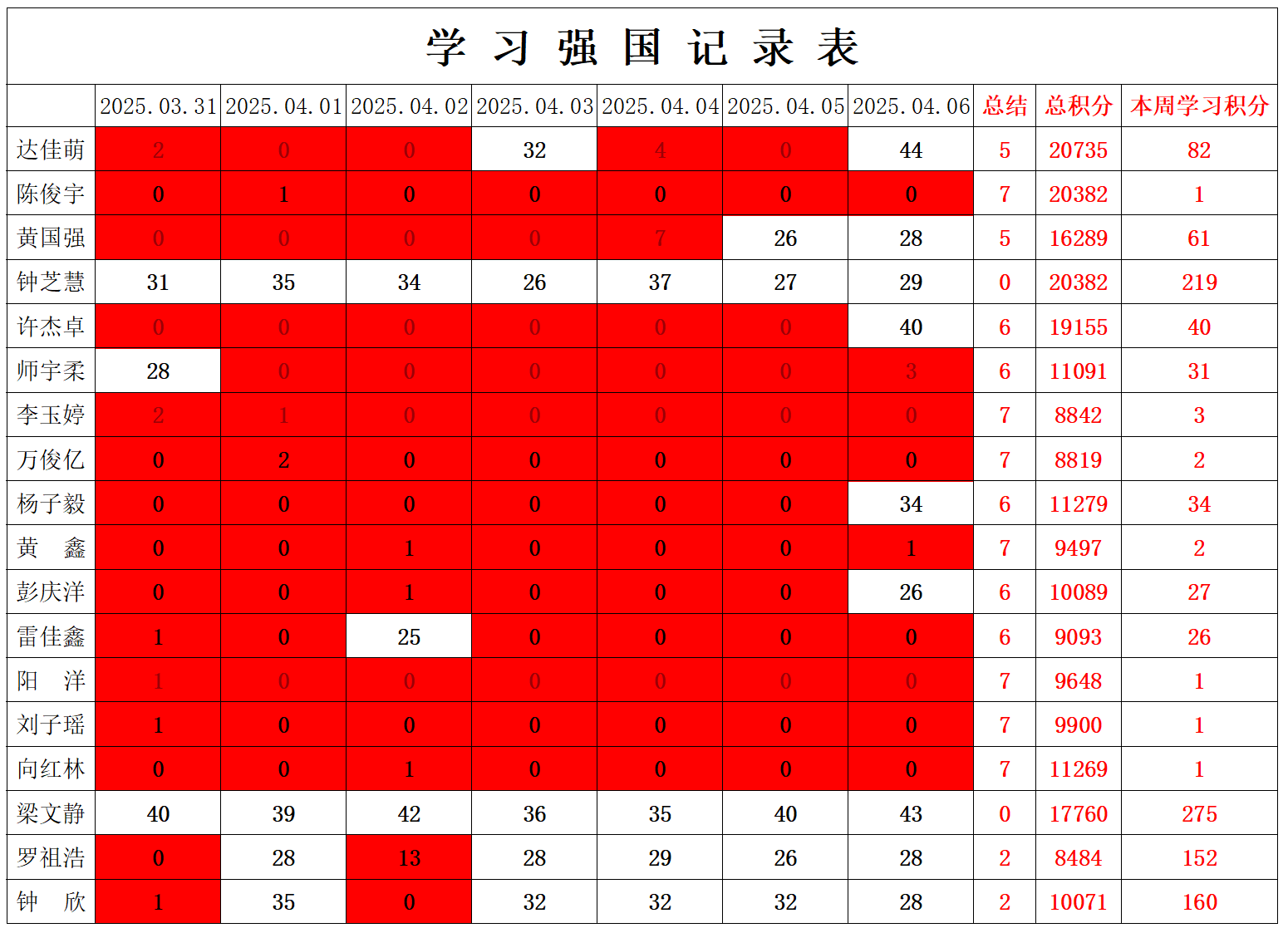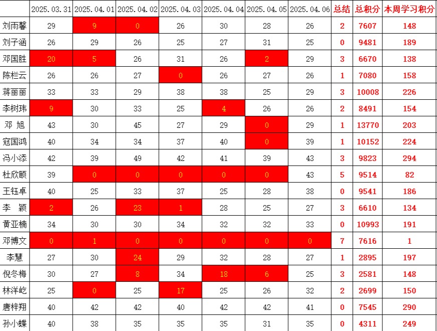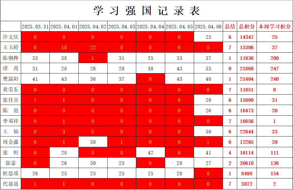 通信工程学院学生党支部2024-2025学年第二学期第六周学习强国学习进度