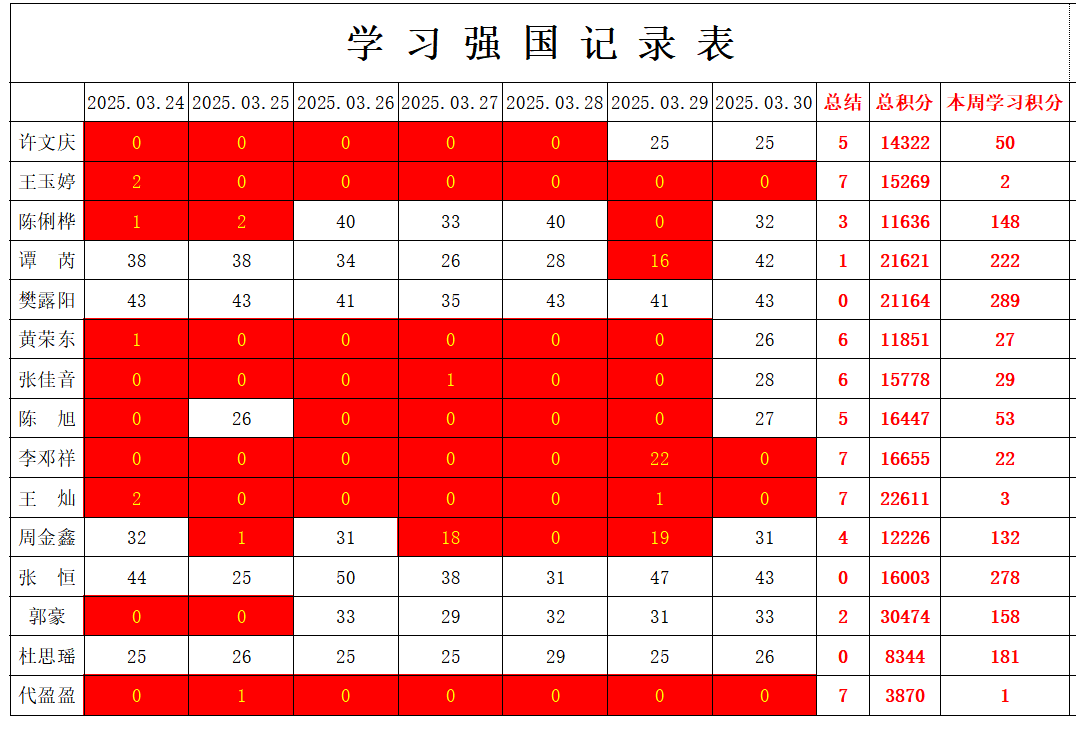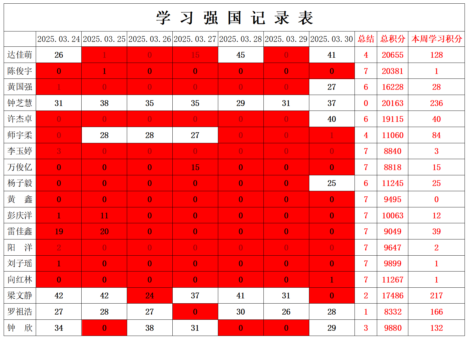通信工程学院学生党支部2024-2025学年第二学期第五周学习强国学习进度