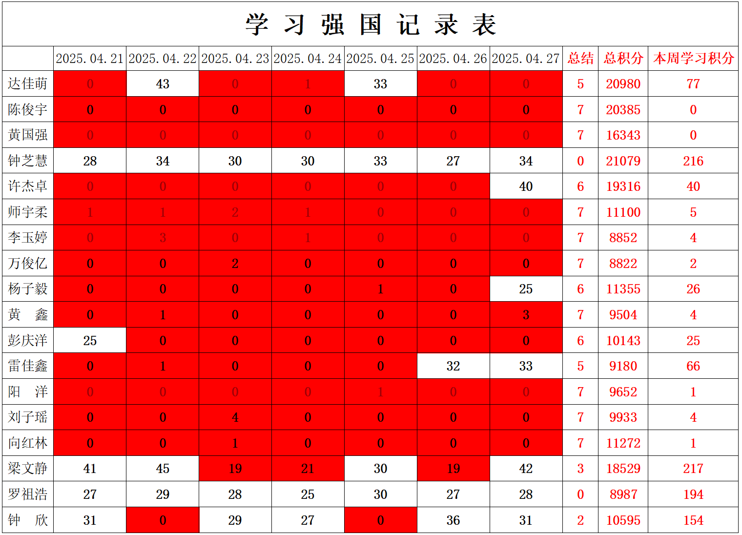 通信工程学院学生党支部2024-2025学年第二学期第九周学习强国学习进度