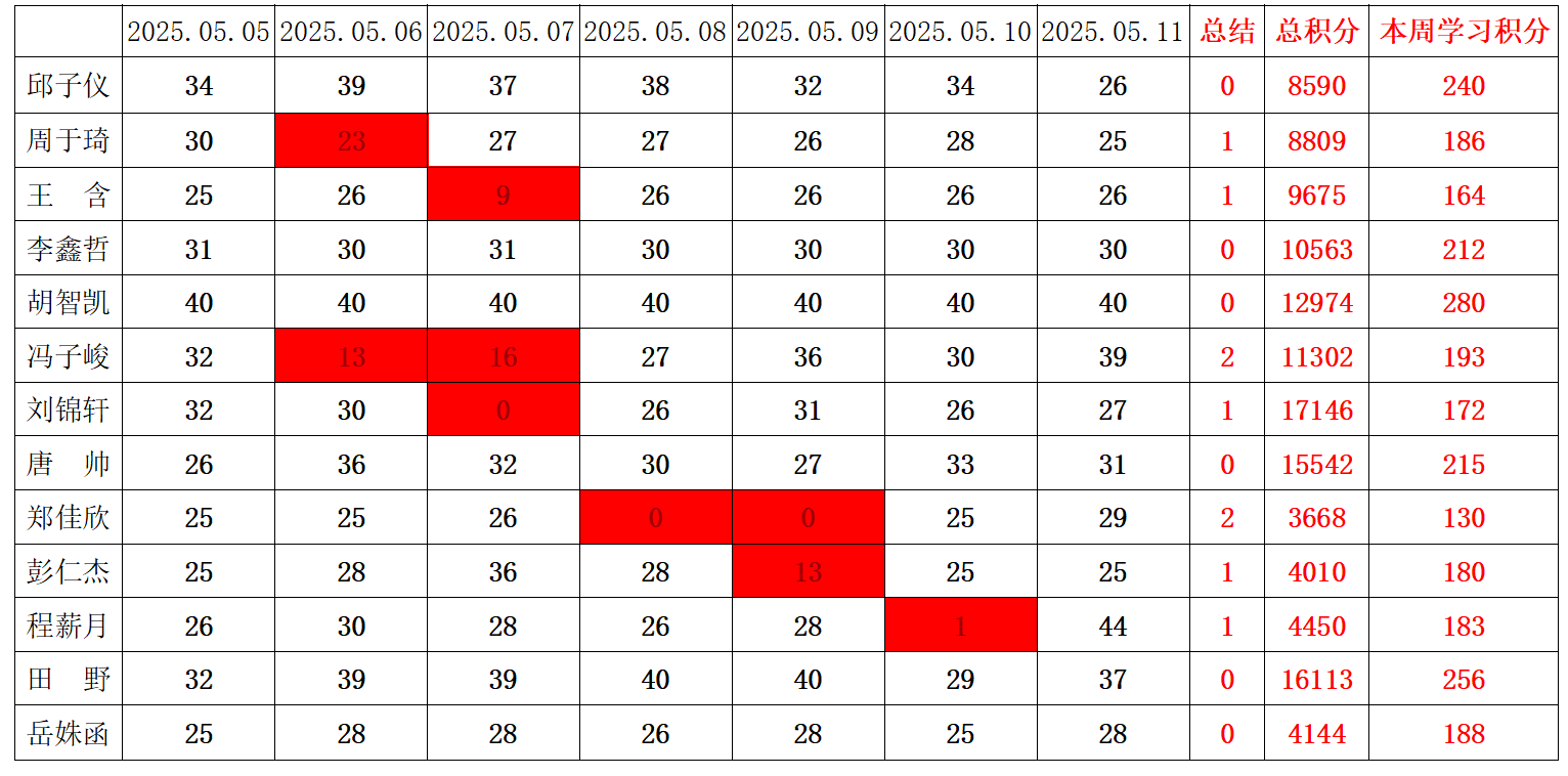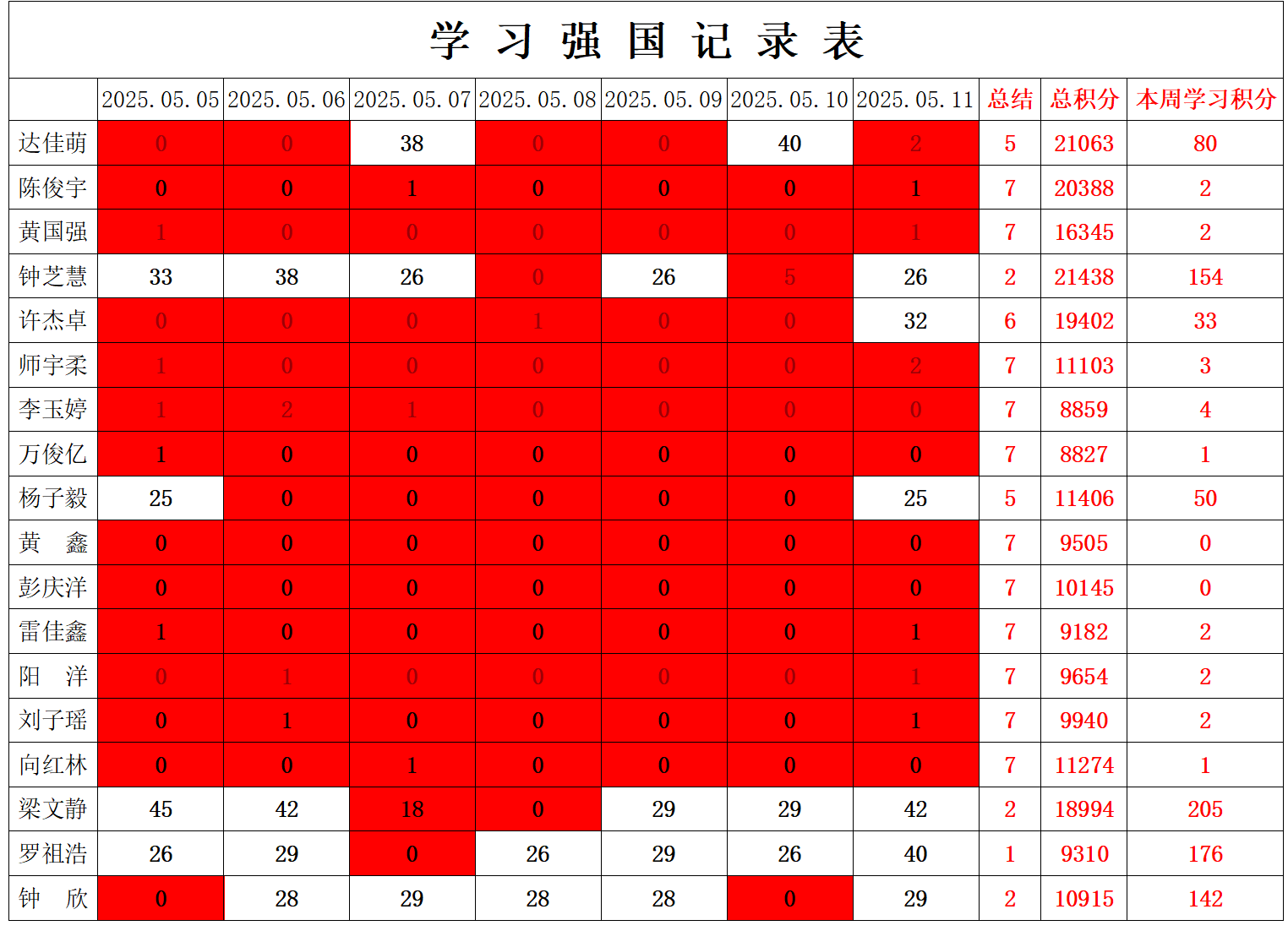 通信工程学院学生党支部2024-2025学年第二学期第十一周学习强国学习进度